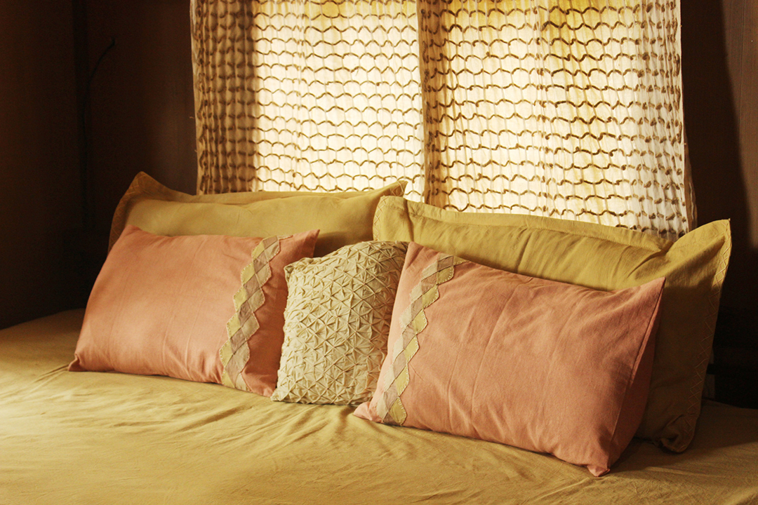 Developed a sustainable bedding collection taking inspiration from the rich heritage of Indian Ayurveda. All the materials used a naturally dyed with herbal healing properties. Hand-crafted design techniques utilized are weaving(curtains), embroidery(shams), applique(pillows) and smocking(decorative pillow).