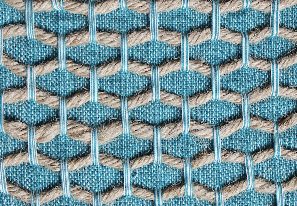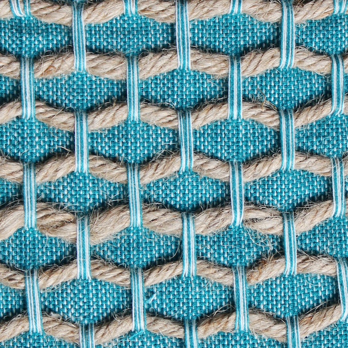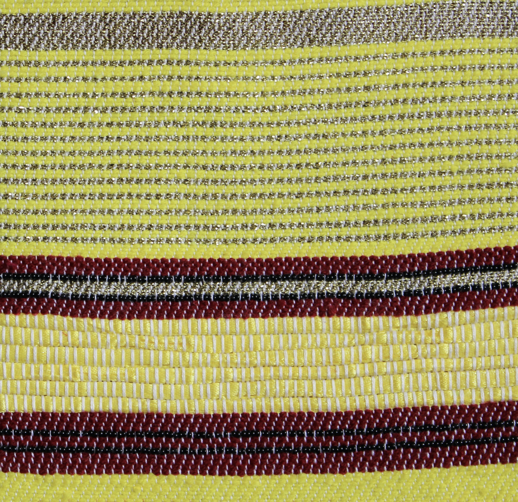 Hand woven samples made on a twelve shaft handloom. Cotton warp blended with multicolor cotton and jute weft.