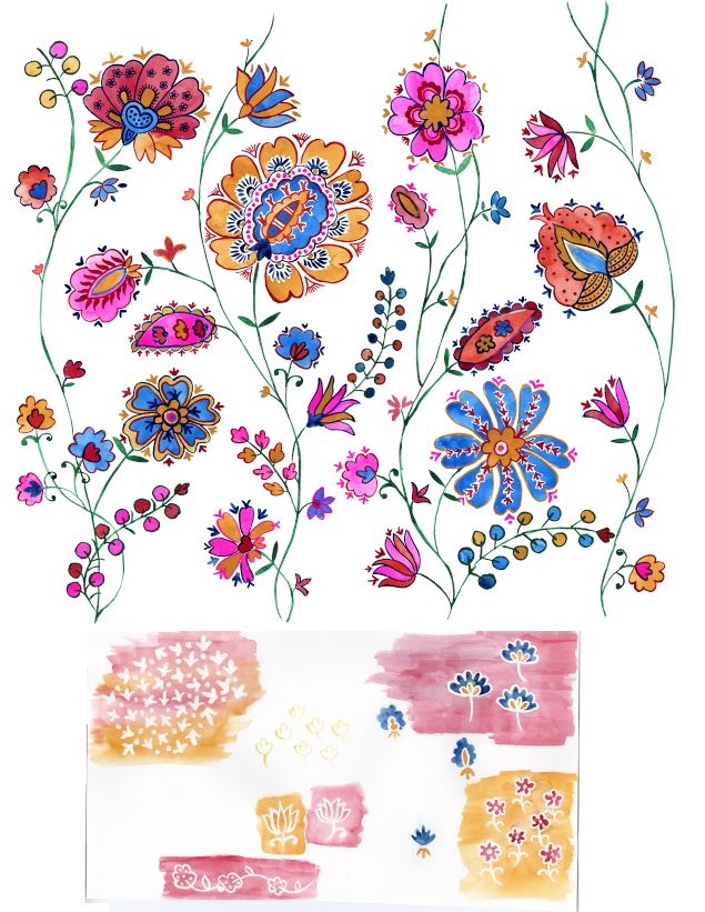 As a Textile Designer at EnVogue International, I curated several hand-painted and digital prints. Below are a few of the hand-painted designs sold to Macys, HomeGoods, Burlington, Ross and etc.