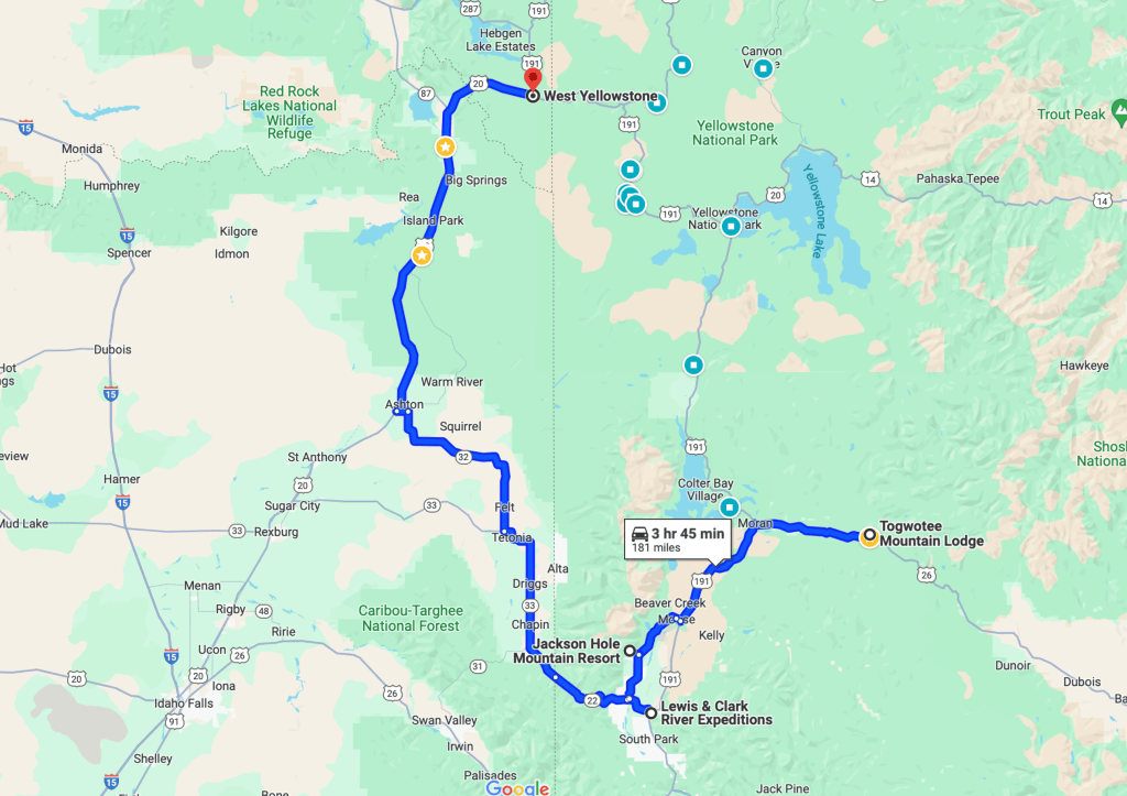We stayed near Moran at Togwotee Mountain Lodge for the night, a bit north of Jackson. I recommend finding accommodation around Jackson to explore Grand Teton.