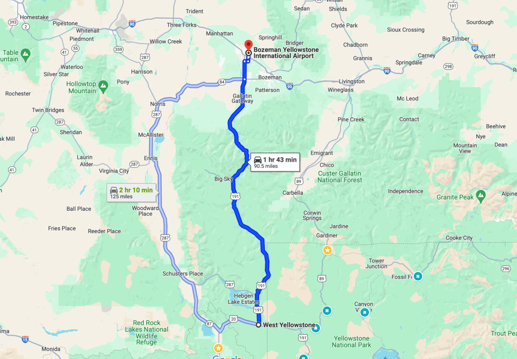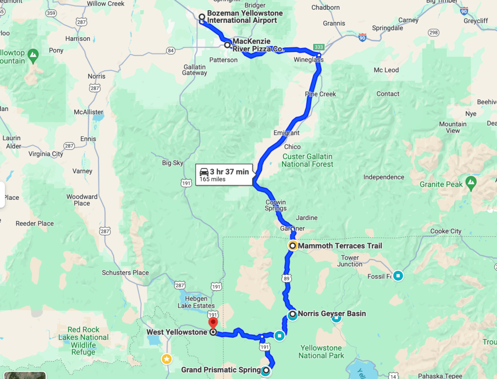 We woke up and had breakfast at Mountain Mama’s Cafe, which serves great sandwiches and coffee. Our flight was at noon from Bozeman, so we started driving towards the airport.