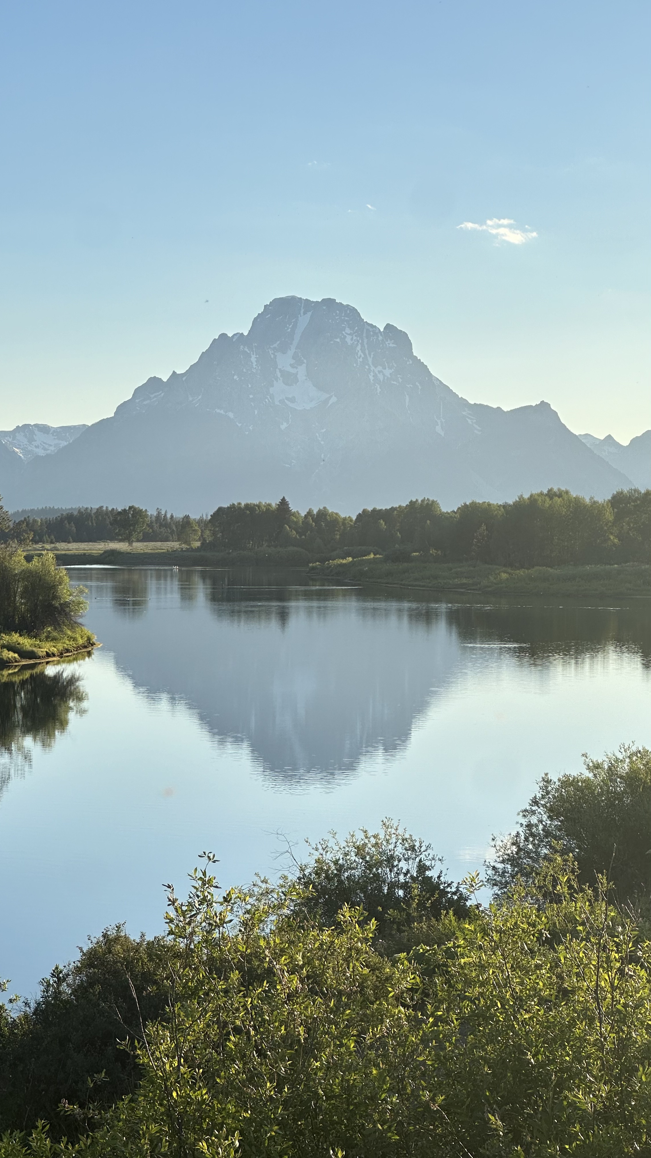 We exited Yellowstone from the south and reached Jenny Lake. We hiked around the lake and had dinner at Everest Moms Shack in Jackson, which is known for its momos and North Indian food. It was truly satisfying.